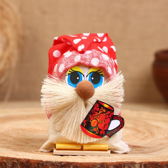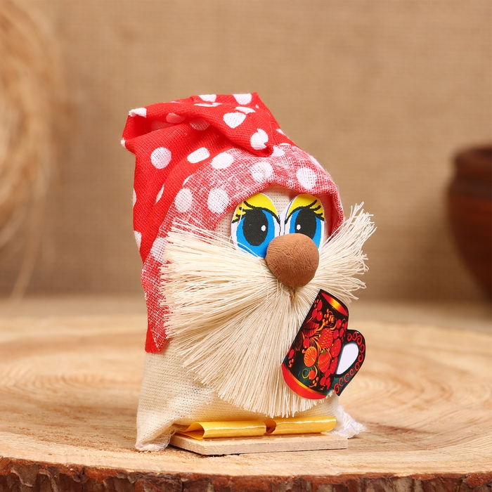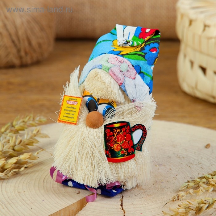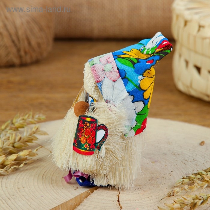 Оберег-домовой "Славуся в льняном колпаке, с ложкой и подковой", микс
