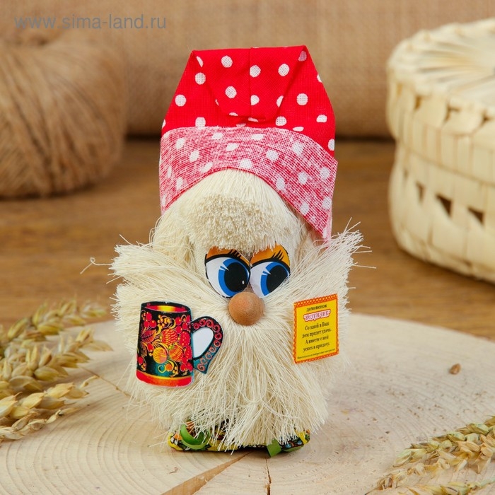 Оберег-домовой "Кузя в кепке, с метлой и подковой", 23х25х13 см МИКС