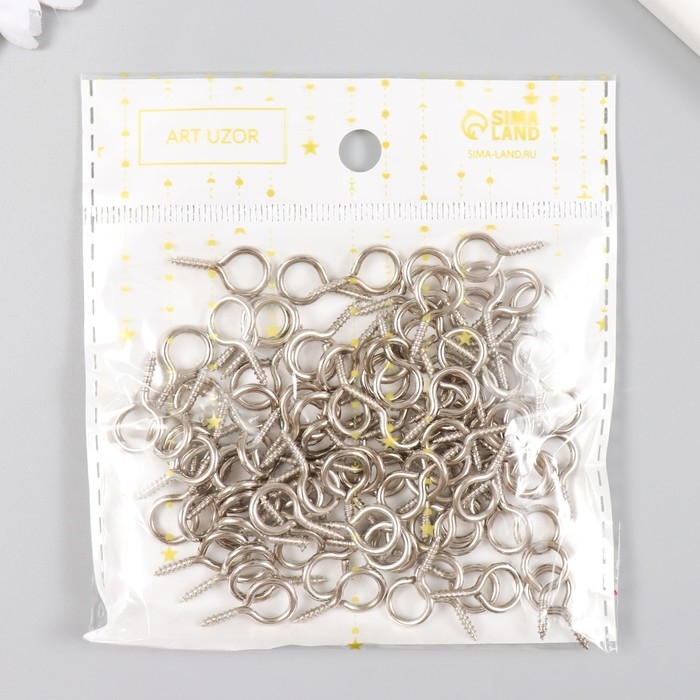 Винт-глазок для крепления картин, фоторам серебро (набор 100 шт) 1,8х0,9 см