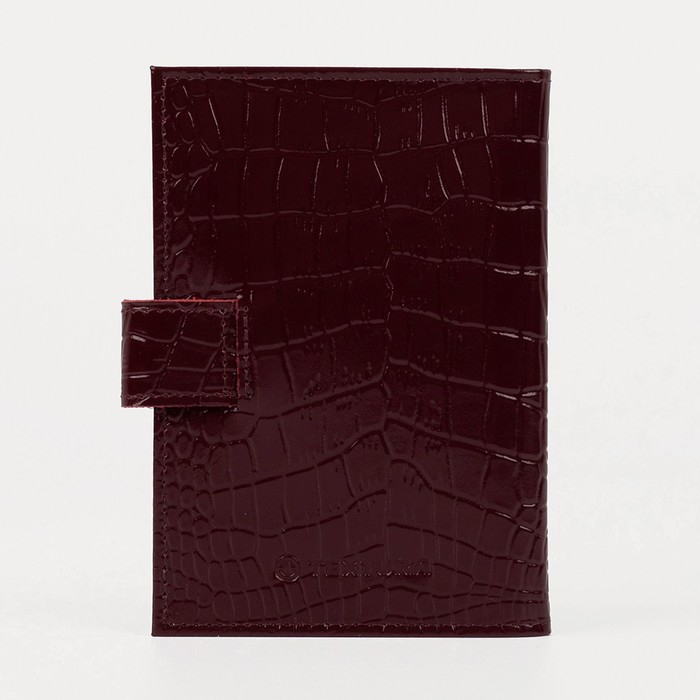 - Элегантный дизайн: глубокий бордовый цвет и фактура под крокодил делают обложку неотъемлемой частью стильного образа.