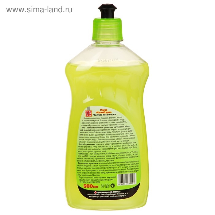 Средство для мытья посуды Fedora "Яблоко", 500 мл