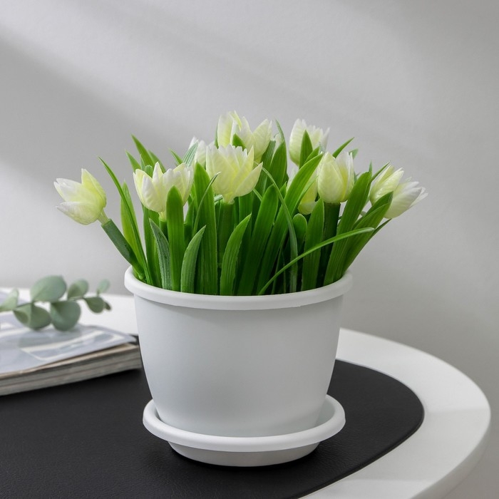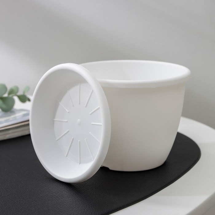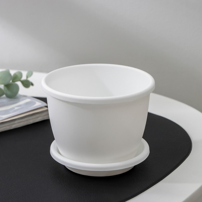 Горшок для цветов с поддоном «Афина», 500 мл, пластиковый, цвет белый