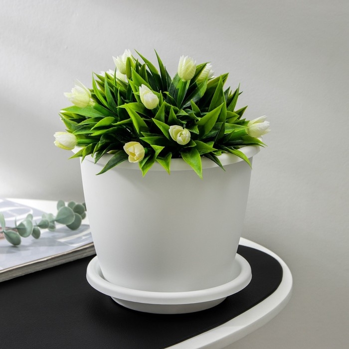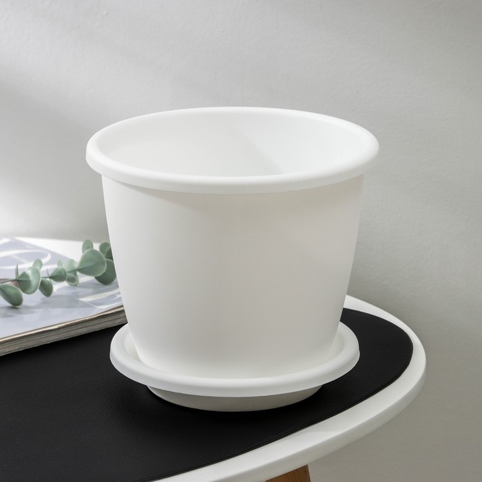 Горшок для цветов с поддоном «Афина», 3 л, пластиковый, цвет белый