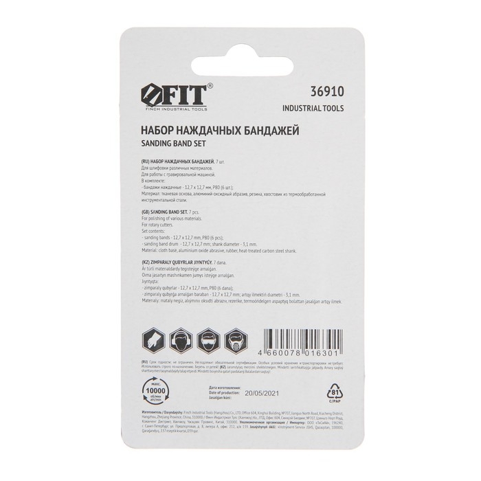 Бандаж наждачный и штифт FIT, набор 7 шт.