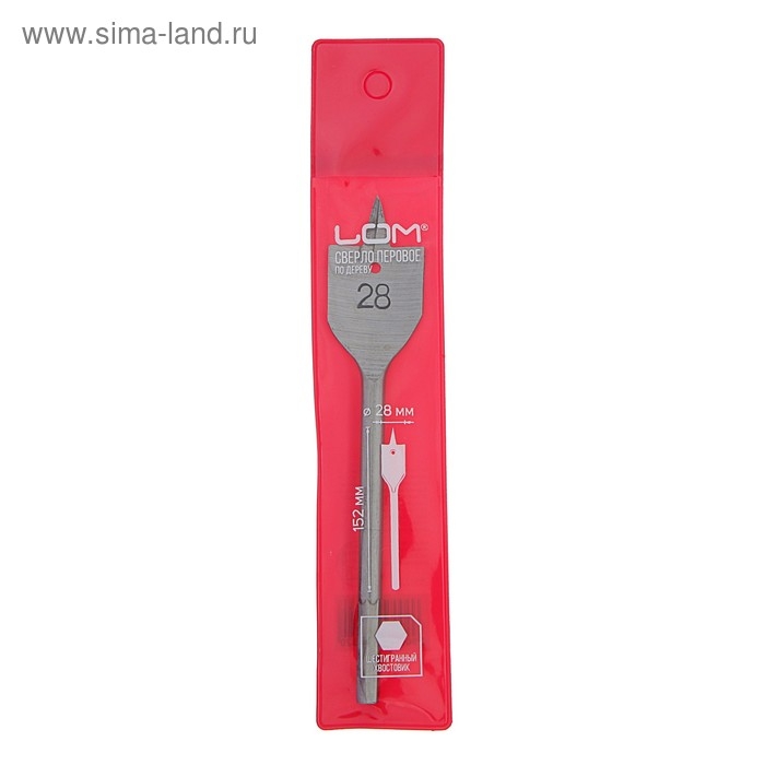 Сверло по дереву перовое ЛОМ, шестигранный хвостовик, 28 х 152 мм