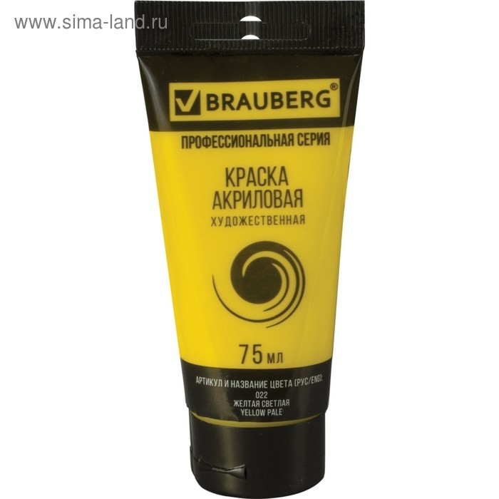 Краска акриловая художественная туба 75 мл, BRAUBERG "Жёлтая светлая"