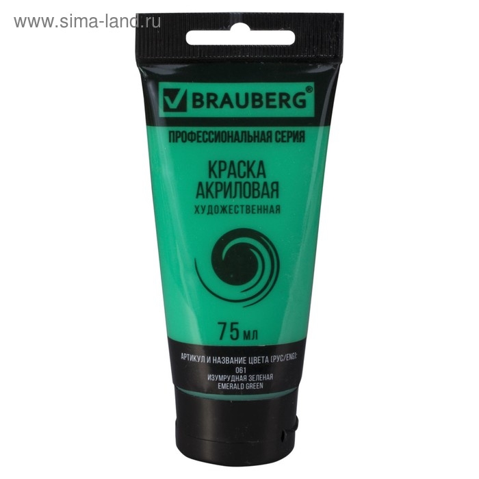 Краска акриловая художественная туба 75 мл, BRAUBERG "Изумрудная зелёная"