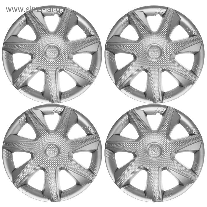 Колпаки колесные R14 "PROFI", серебристый карбон, комплект 4 шт