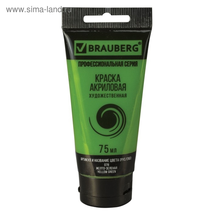 Краска акриловая художественная туба 75 мл, BRAUBERG "Жёлто-зелёная"