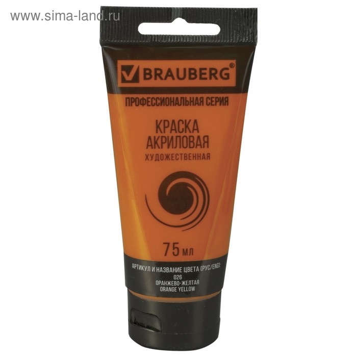 Краска акриловая художественная туба 75 мл, BRAUBERG "Оранжево-жёлтая"