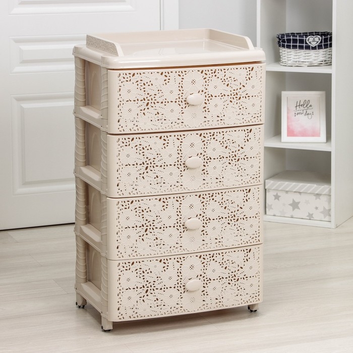 Комод 4-х секционный «Плетёнка», цвет слоновая кость