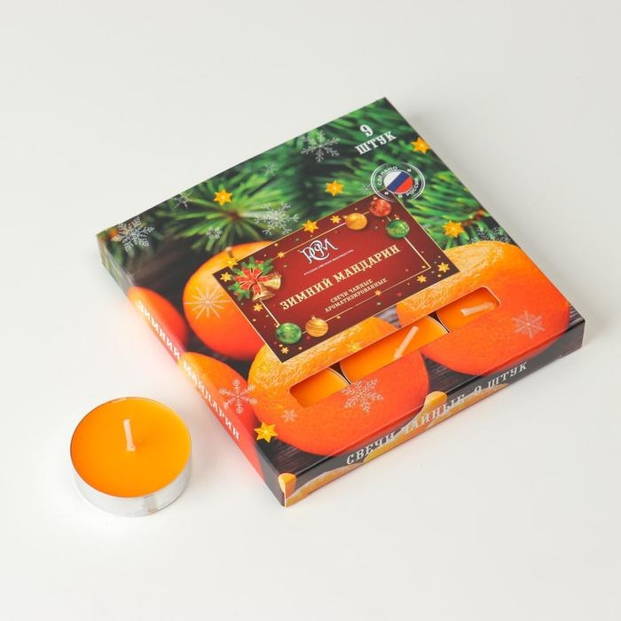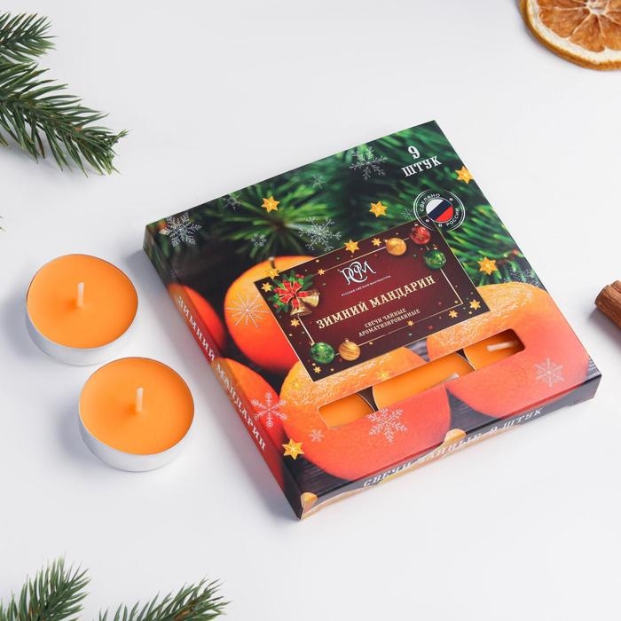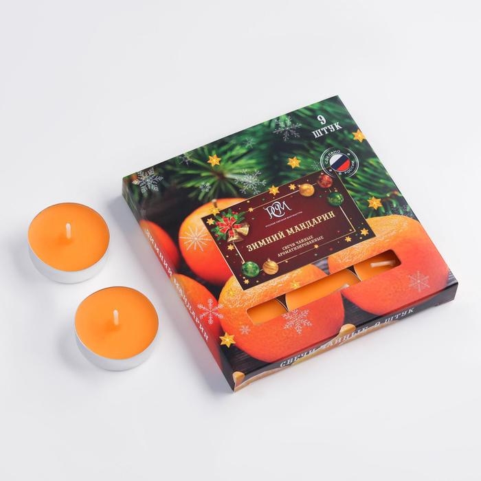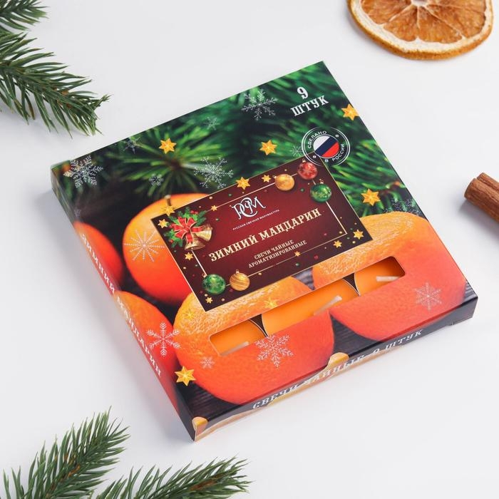 Новый год. Набор чайных свечей ароматизированных "Зимний мандарин", 10гр, 9штук