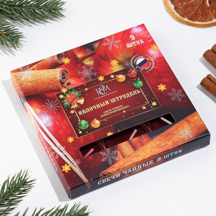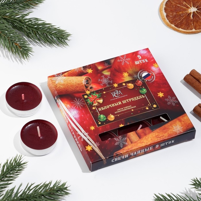 Набор чайных свечей ароматизированных "Яблочный штрудель", 10гр, 9штук