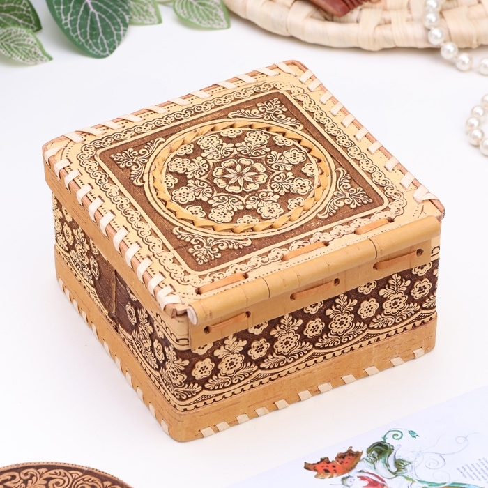 Шкатулка «Узор», шарнирная, 13х13х7 см, береста