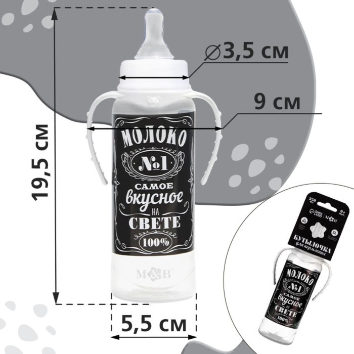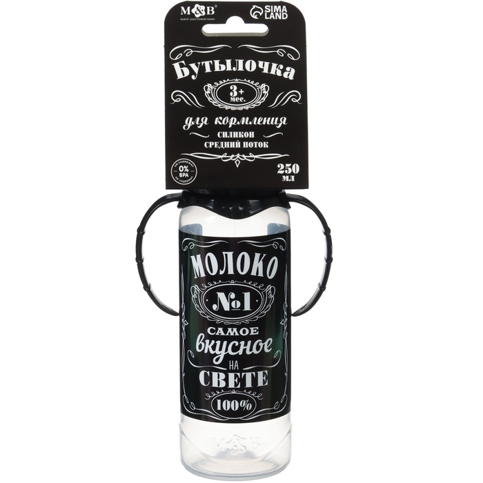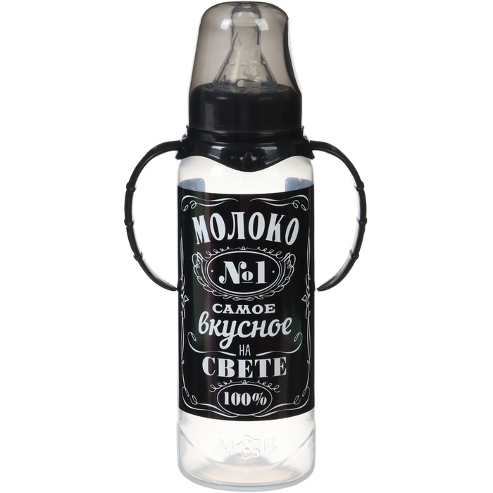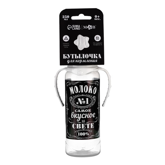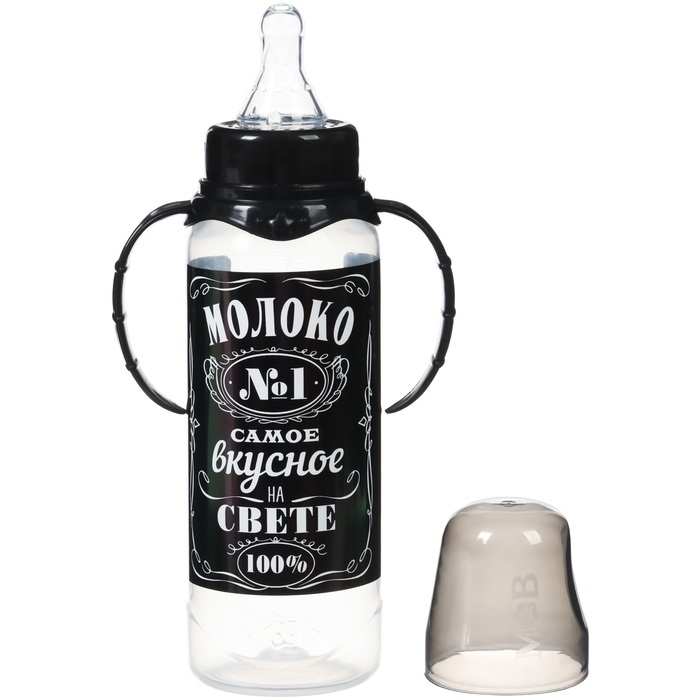Бутылочка для кормления «Молоко № 1», классическое горло, с ручками, 250 мл., от 0 мес., цвет чёрный