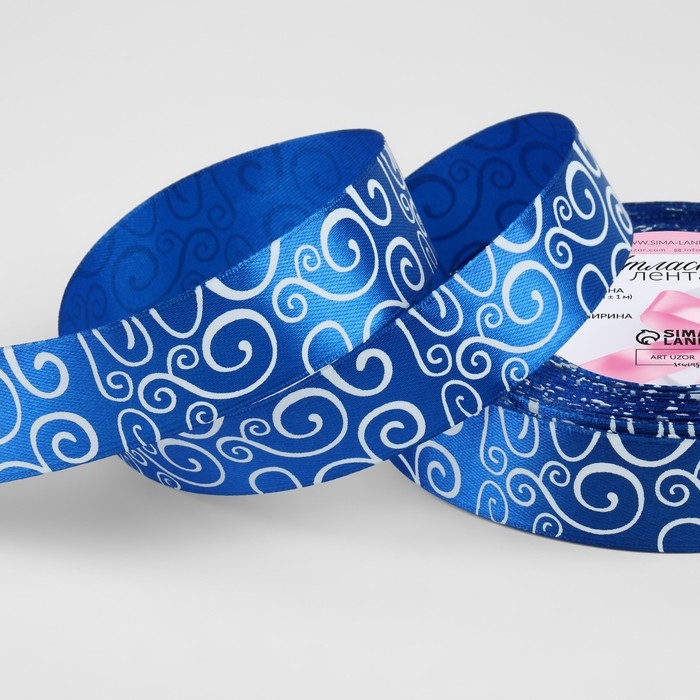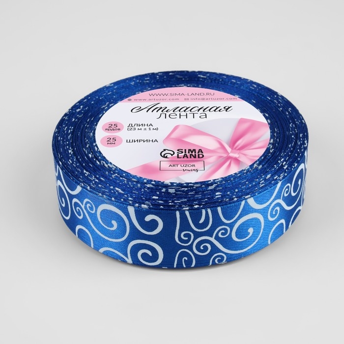 Лента атласная «Узор», 25 мм × 23 ± 1 м, цвет белый/синий №040