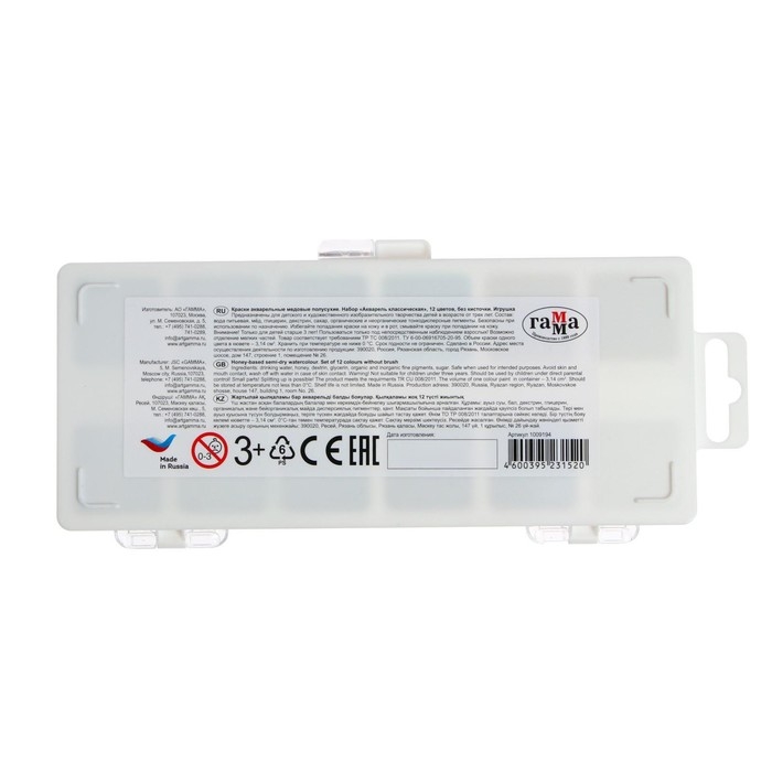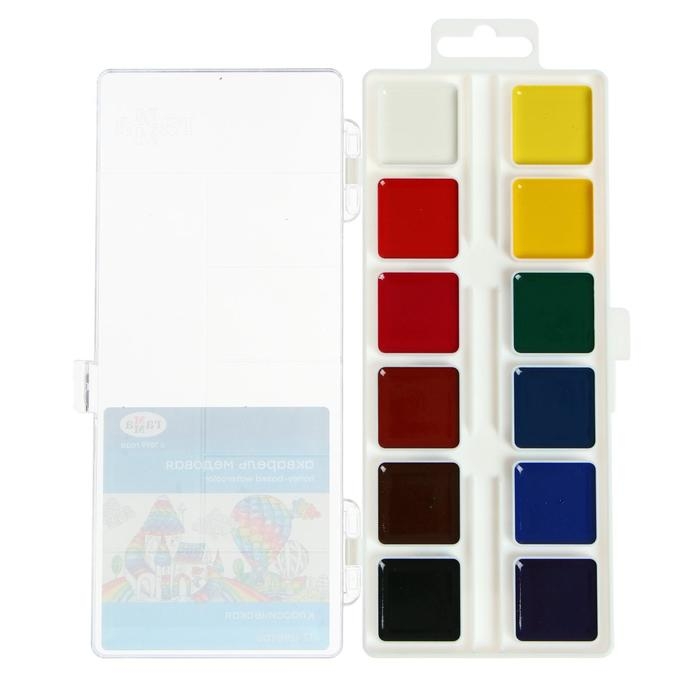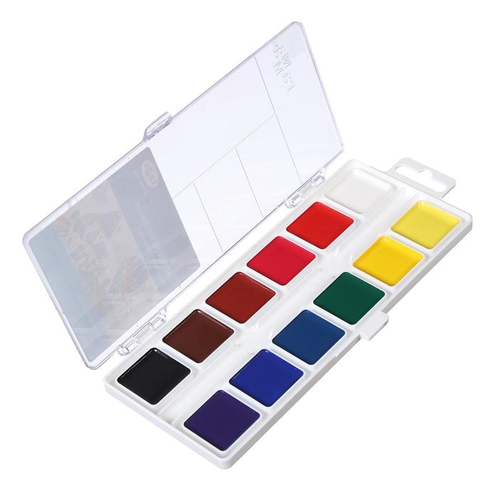 Акварель 12 цветов "Гамма" "Классическая", медовая, без кисти, пластик