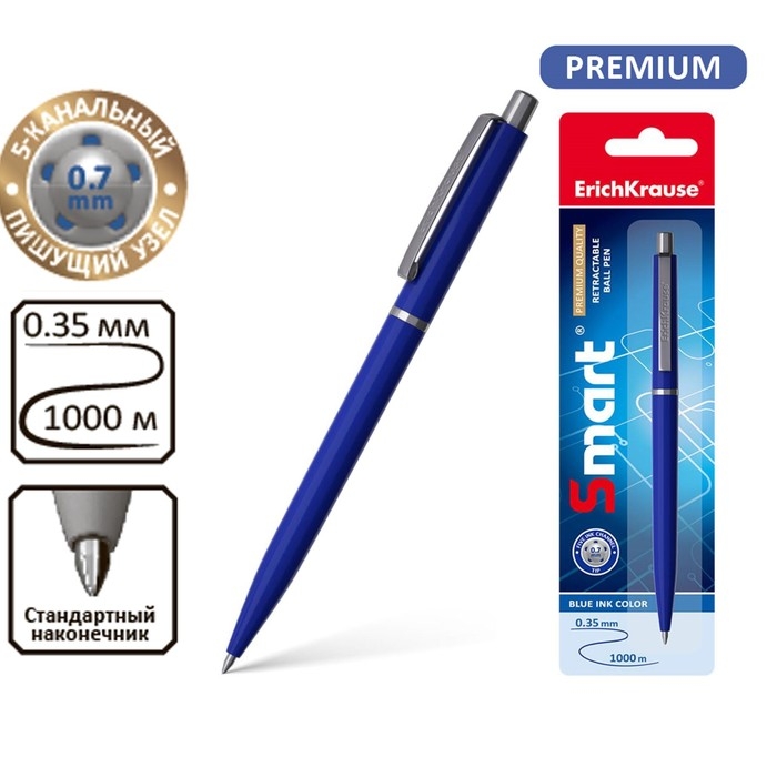 Ручка шариковая автоматическая Smart, узел 0.7 мм, под логотип, чернила синие, длина линии письма 1000 метров, блистер
