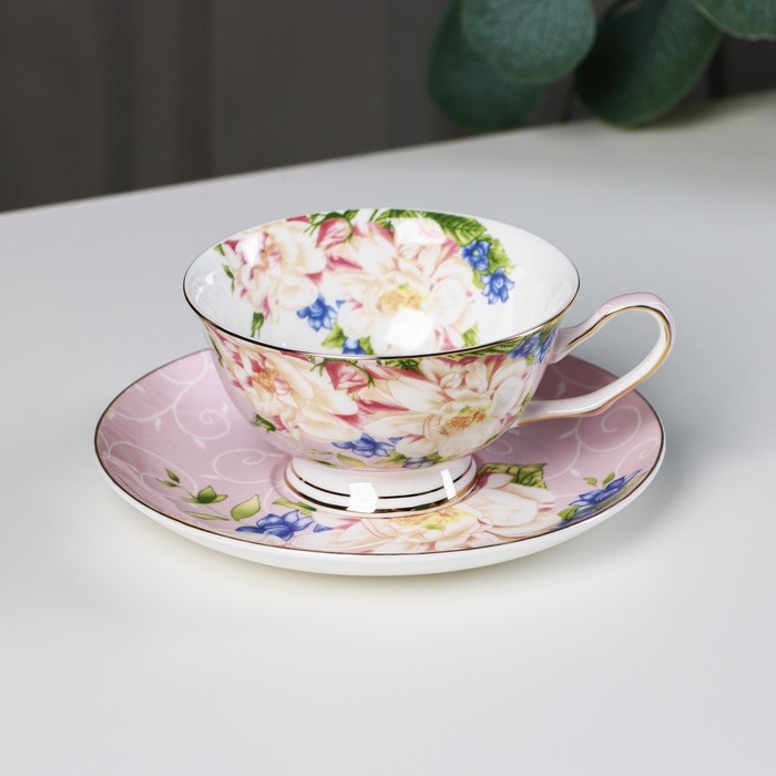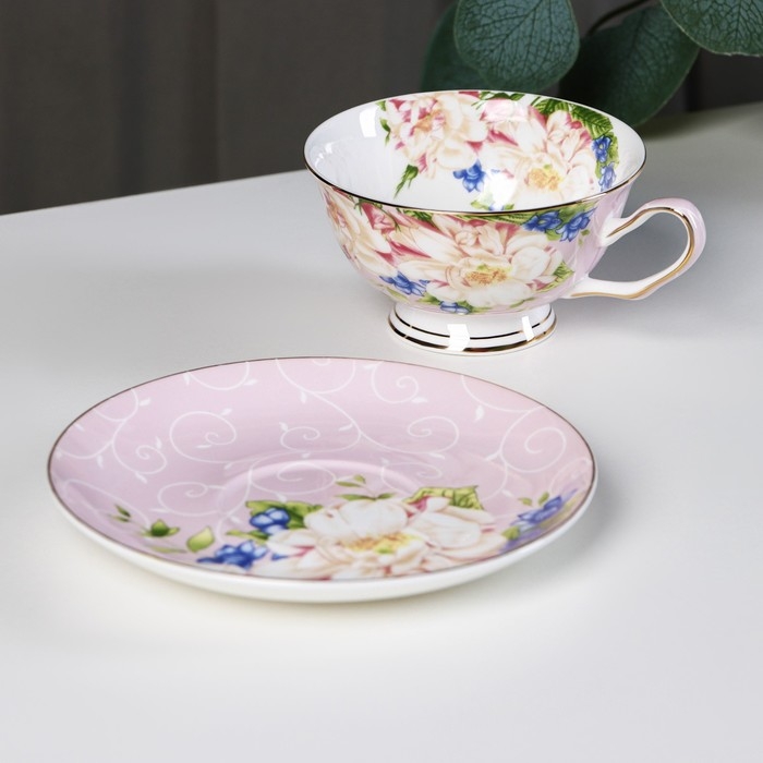 Чайная пара фарфоровая «Чайная роза», 2 предмета: чашка 200 мл, блюдце d=15 см
