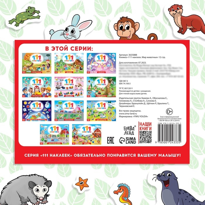 В альбоме представлено более 100 наклеек с красочными изображениями животных разных стран и континентов. Яркие картинки тренируют визуальное восприятие, память и воображение малыша.