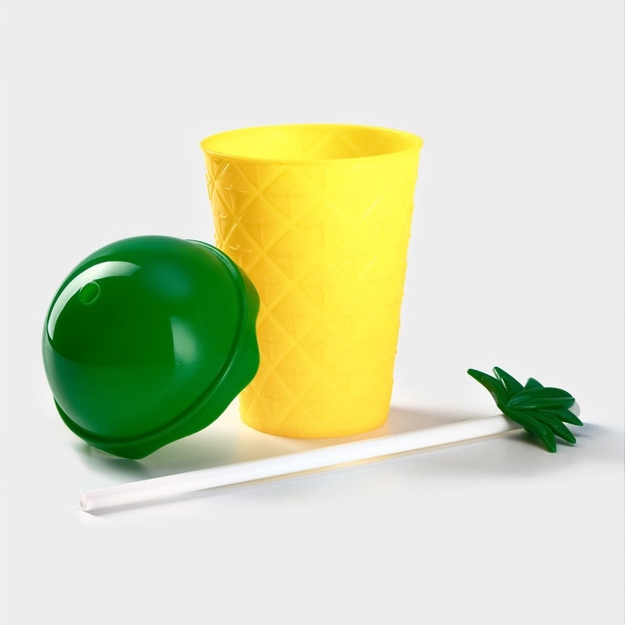 Стакан пластиковый с трубочкой и крышкой Доляна «Ананас», 450 мл, цвет жёлтый