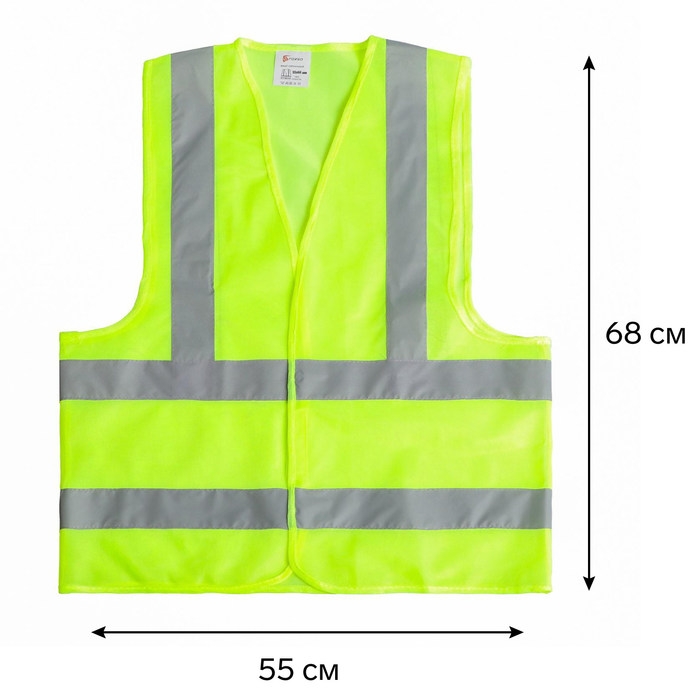 Жилет сигнальный, светоотражающий, салатовый, 3 класс, размер 68×55 см, 60г/м2