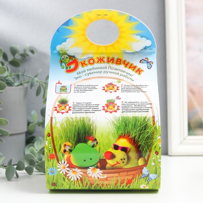 У забавного персонажа на теле или голове вырастает высокая нежная травка, если его регулярно поливать. Эти сувениры производятся только из 100 % экологичных и безопасных для здоровья составляющих.