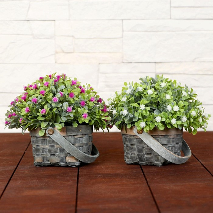 Бонсай "Нежное цветение в корзиночке" 9х13 см, микс