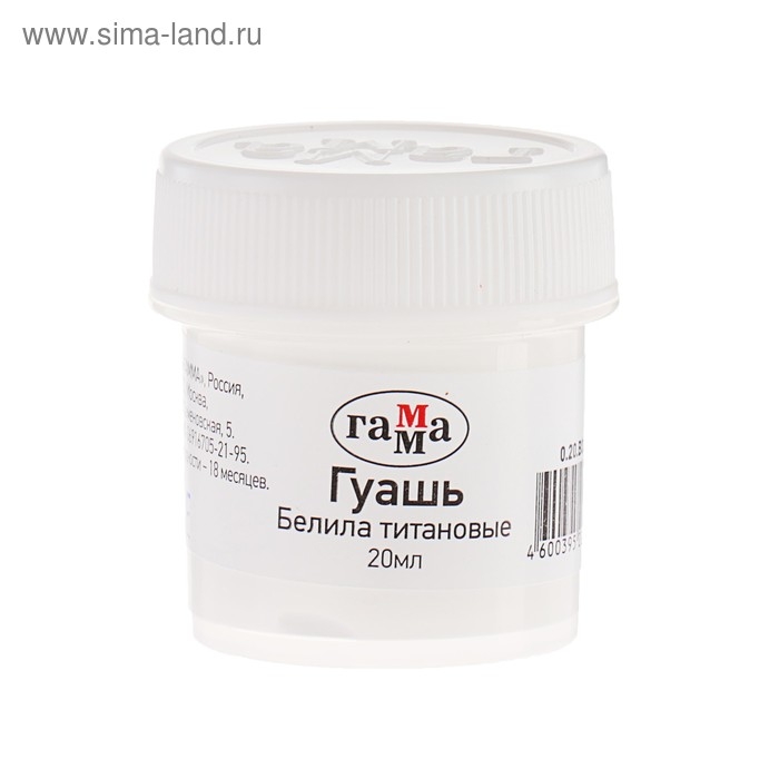 Гуашь художественная банка 20 мл, Гамма, белила титановые, 0.20.В020.0012