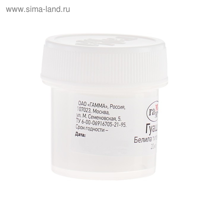 Гуашь художественная банка 20 мл, Гамма, белила цинковые, 0.20.В020.0011