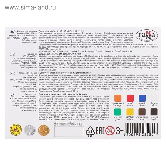 Пластилин 30 цветов 600 г, Гамма "Мультики", со стеком, картонная упаковка 210119_04