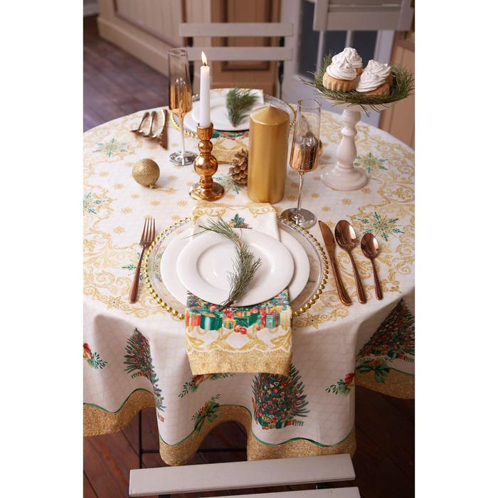 Скатерть новогодняя Этель "Golden Christmas" d=215 +/- 2см с ГМВО, 100% хлопок, саржа 190 гр/м2
