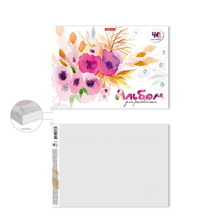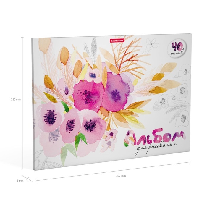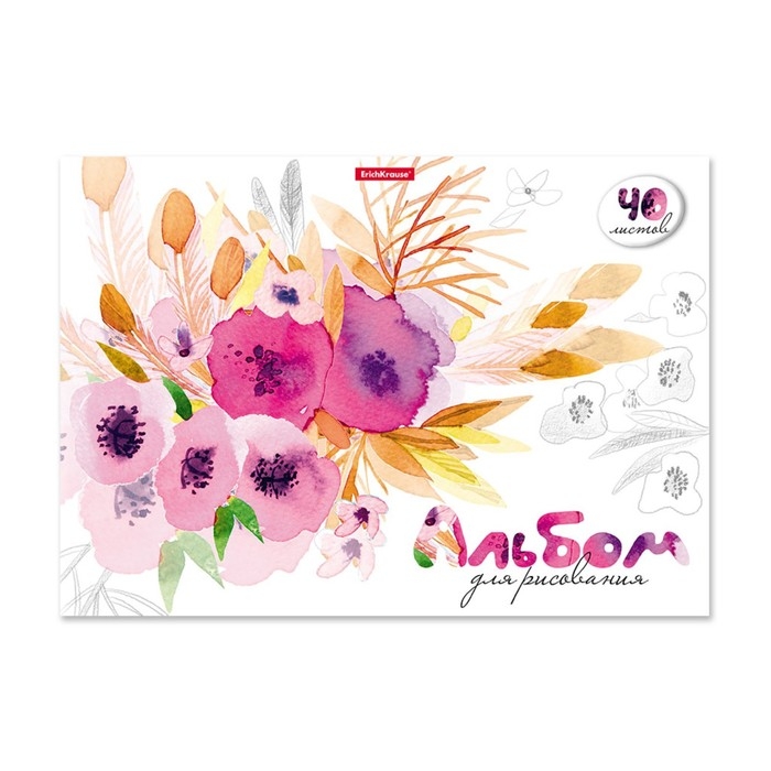 Альбом для рисования А4, 40 листов, блок 120 г/м², на клею, Erich Krause "Нежный букет", 100% белизна, твердая подложка