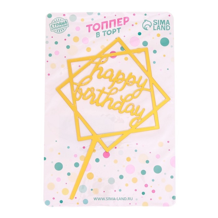 Топпер для торта «С Днём Рождения», 15×13,5 см, цвет золотой