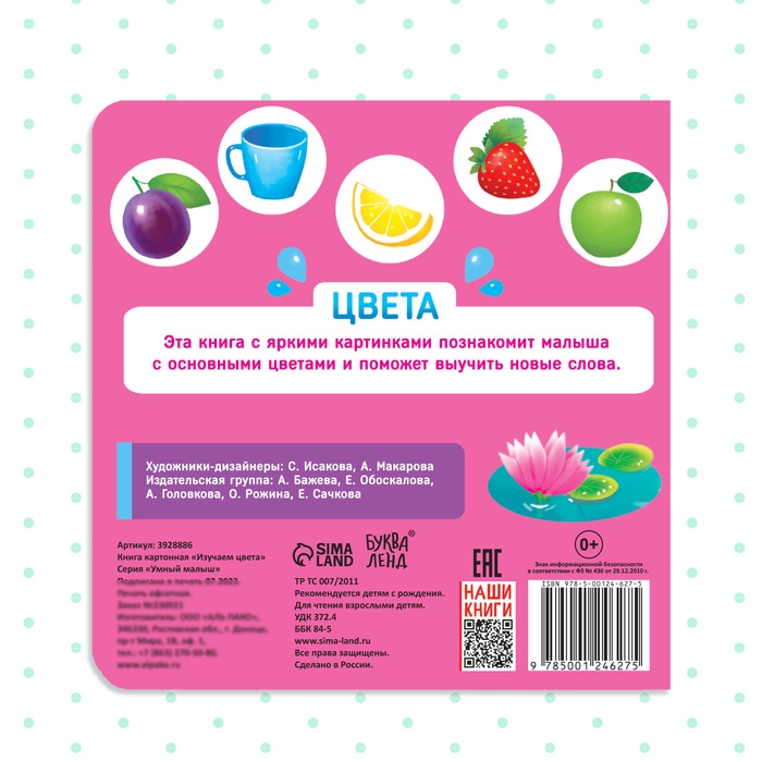Картонная книга «Изучаем цвета», 10 стр.