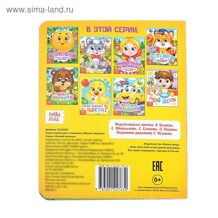 Серия картонных книг с глазками «Умный малыш» представлена восьмью изданиями на разные тематики: