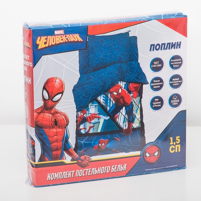 Постельное бельё 1,5 сп "Человек-Паук" 143х215 см, 150х214 см, 50х70 см -1 шт., поплин 125 г/м2
