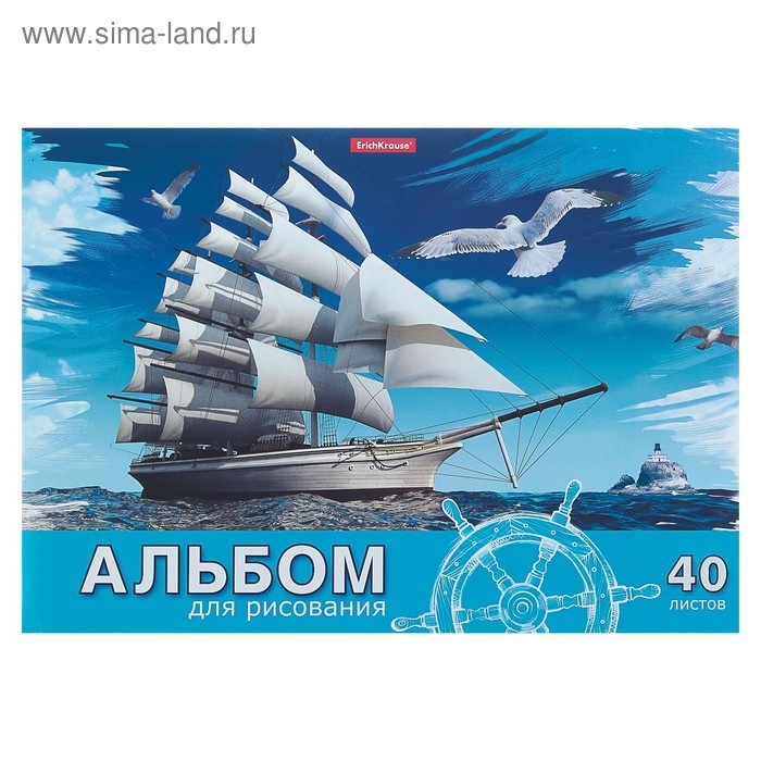 Альбом для рисования А4, 40 листов, блок 120 г/м², на клею, Erich Krause "Морская прогулка", 100% белизна, твердая подложка