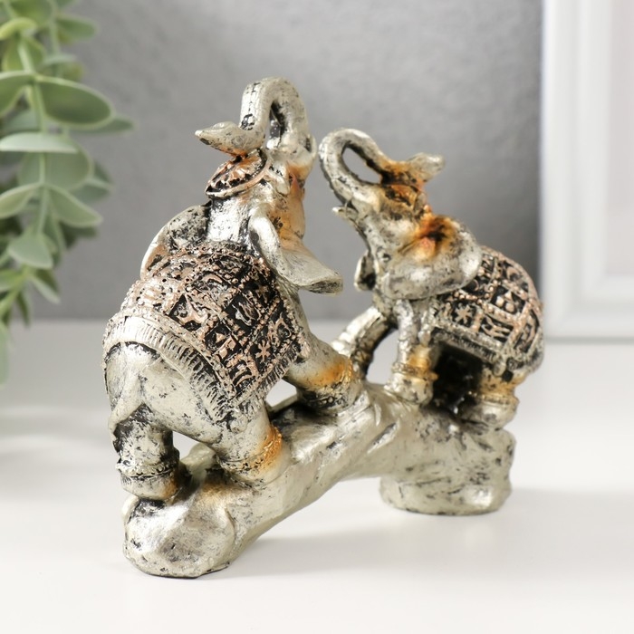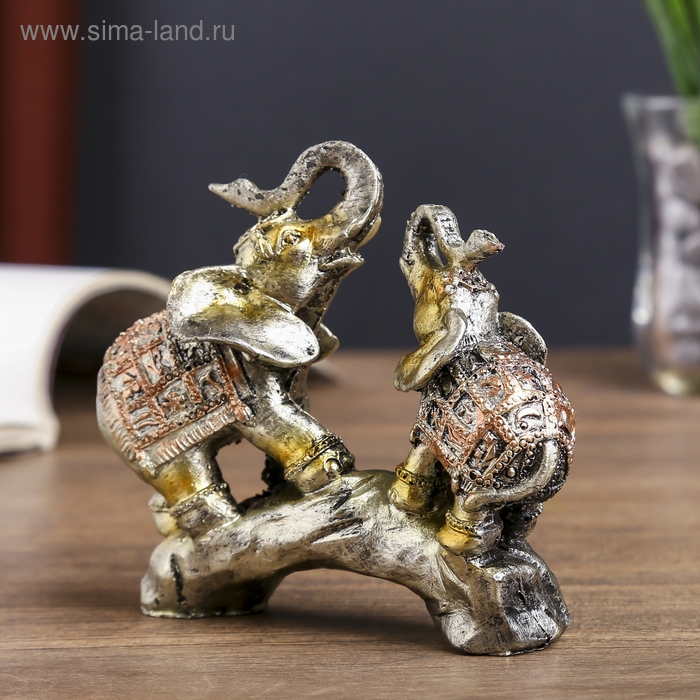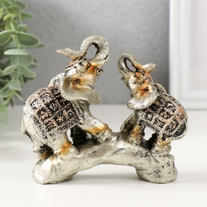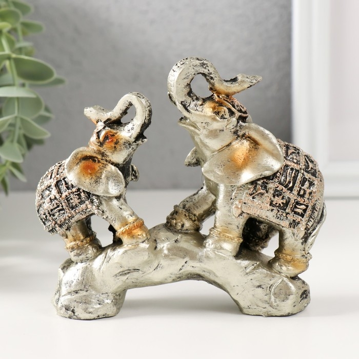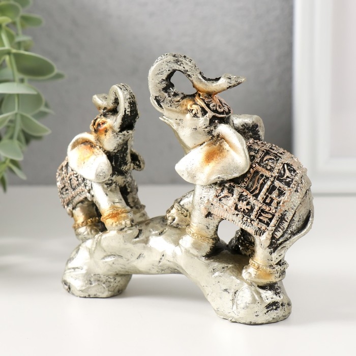 Сувенир полистоун "Слоны на камне с попонах с наскальными рисунками" 11х11х3,5 см