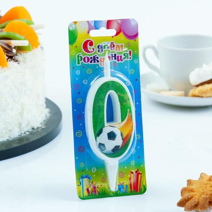 Свеча для торта "Футбольная", 10,2 см, зелёная цифра "0"