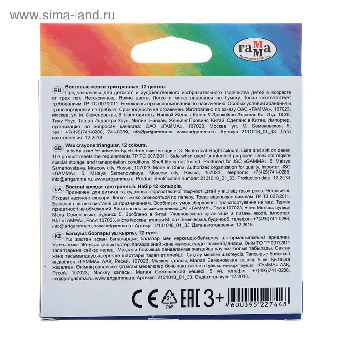 Мелки восковые 12 цветов, "Классические", треугольные, европодвес