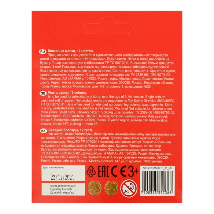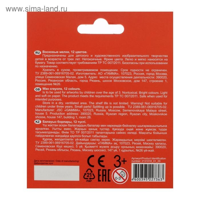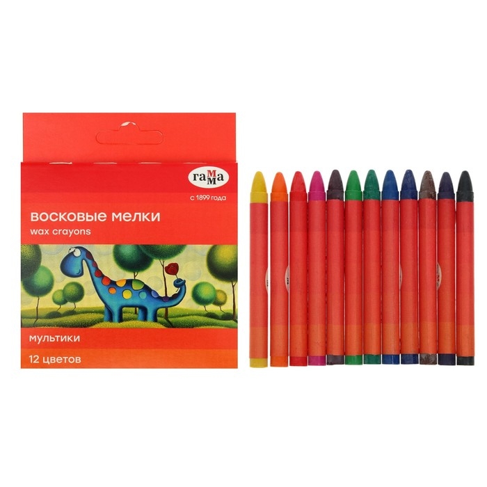 Мелки восковые 12 цветов, "Гамма" "Мультики", круглые, европодвес