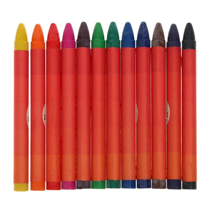 Мелки восковые 12 цветов Hatber Art Time, круглый корпус, 9 мм, картонная коробка, европодвес