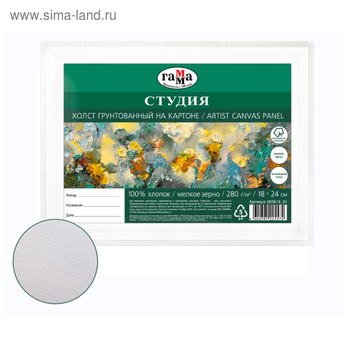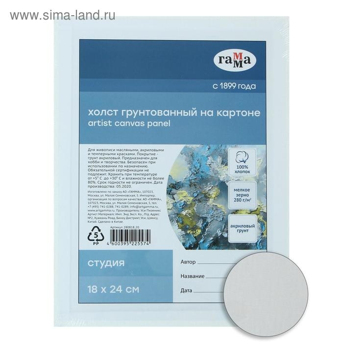 Холст на картоне 18 х 24 см, хлопок 100%, акриловый грунт, мелкозернистый, «Студия»