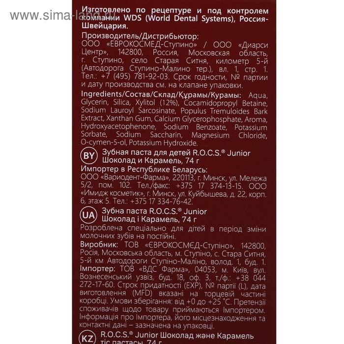 Зубная паста R.O.C.S. Junior, «Шоколад и карамель», 6-12 лет, 74 г