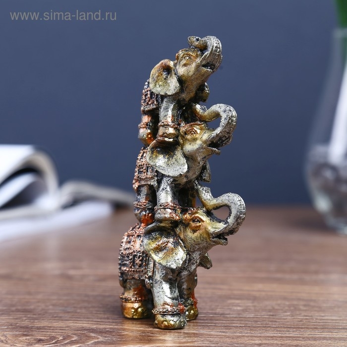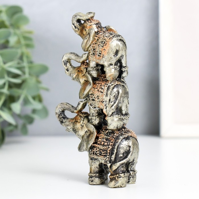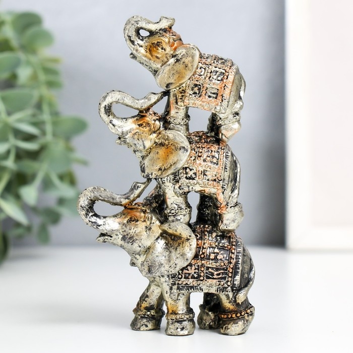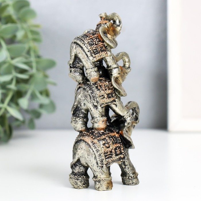 Сувенир полистоун "Три слоника-пирамида попона с орнаментом" 12х7,5х3,2 см