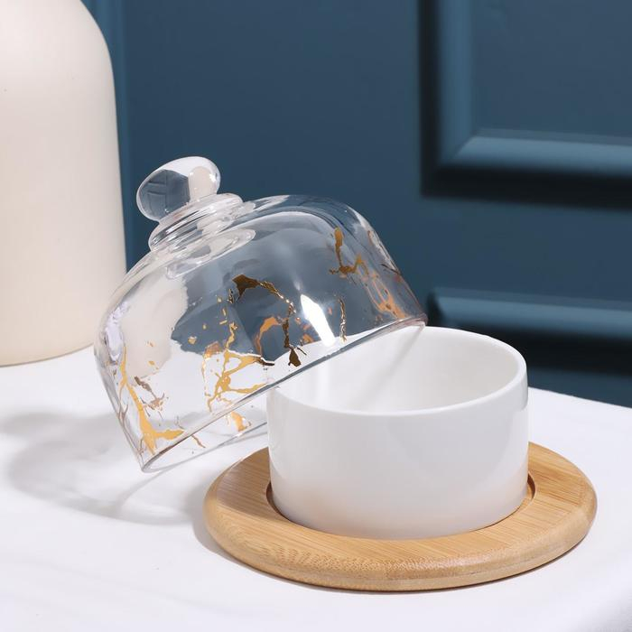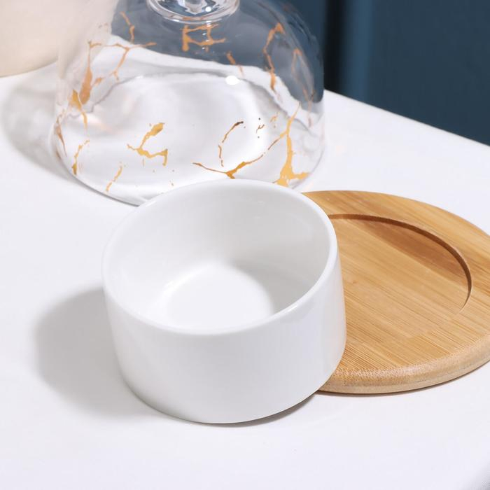 Соусник керамический «Марбл», 150 мл, d=8 см, с подставкой и крышкой