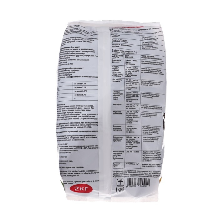 Гранулированная форма продукта обеспечивает его удобство в использовании. Одна упаковка Оргавита Куриного весом 2 кг позволяет обработать значительную площадь земли, что делает его экономически выгодным выбором для фермеров и садоводов.