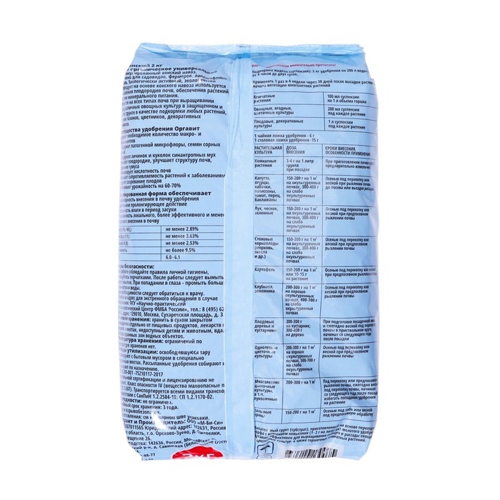 Гранулированная форма удобрения позволяет легко дозировать и применять его на почве. Оргавит Конский имеет высокую растворимость, что обеспечивает быстрое всасывание растениями необходимых питательных веществ.