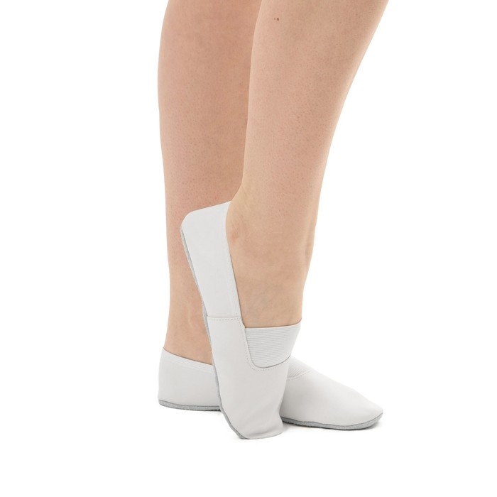 Чешки подходят для занятий танцами, гимнастикой и спортом. Подошва из натуральной кожи не скользит на гладком паркете и обеспечивает хорошее сцепление с площадкой. Широкая мягкая резинка крепко удерживает стопу, с ней чешки плотно сидят на ноге. Нейтральный цвет подойдёт любому костюму.